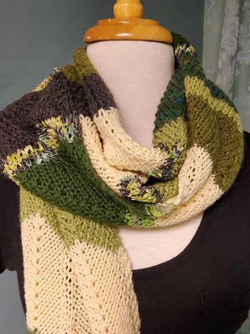 A fun chevron scarf! Merino wool, Cotton, Icelandic wool, Bamboo, Alpaca and other fibers make up this fun scarf. Creamy white, woodland green, dark grey, moss green are just a few of the colors that will keep you cozy his winter.