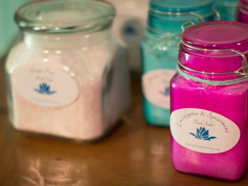 A blend of salts including pink salt & epsom salt. Infused with therapeutic essential oils. Ask about custom blends.